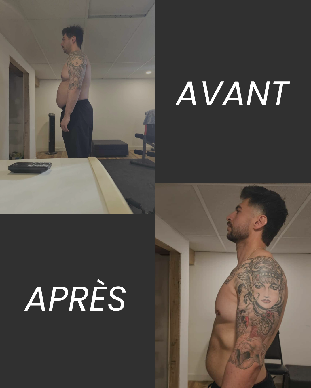 Suivi complet incluant entraînement, nutrition et coaching hebdomadaire pour te garder motivé et t’amener vers des résultats durables.